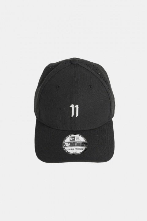 11xNE 39THIRTY Fitted Curve features an allover spacer mesh fabrication with an 11 embroidered insignia at the front panels.