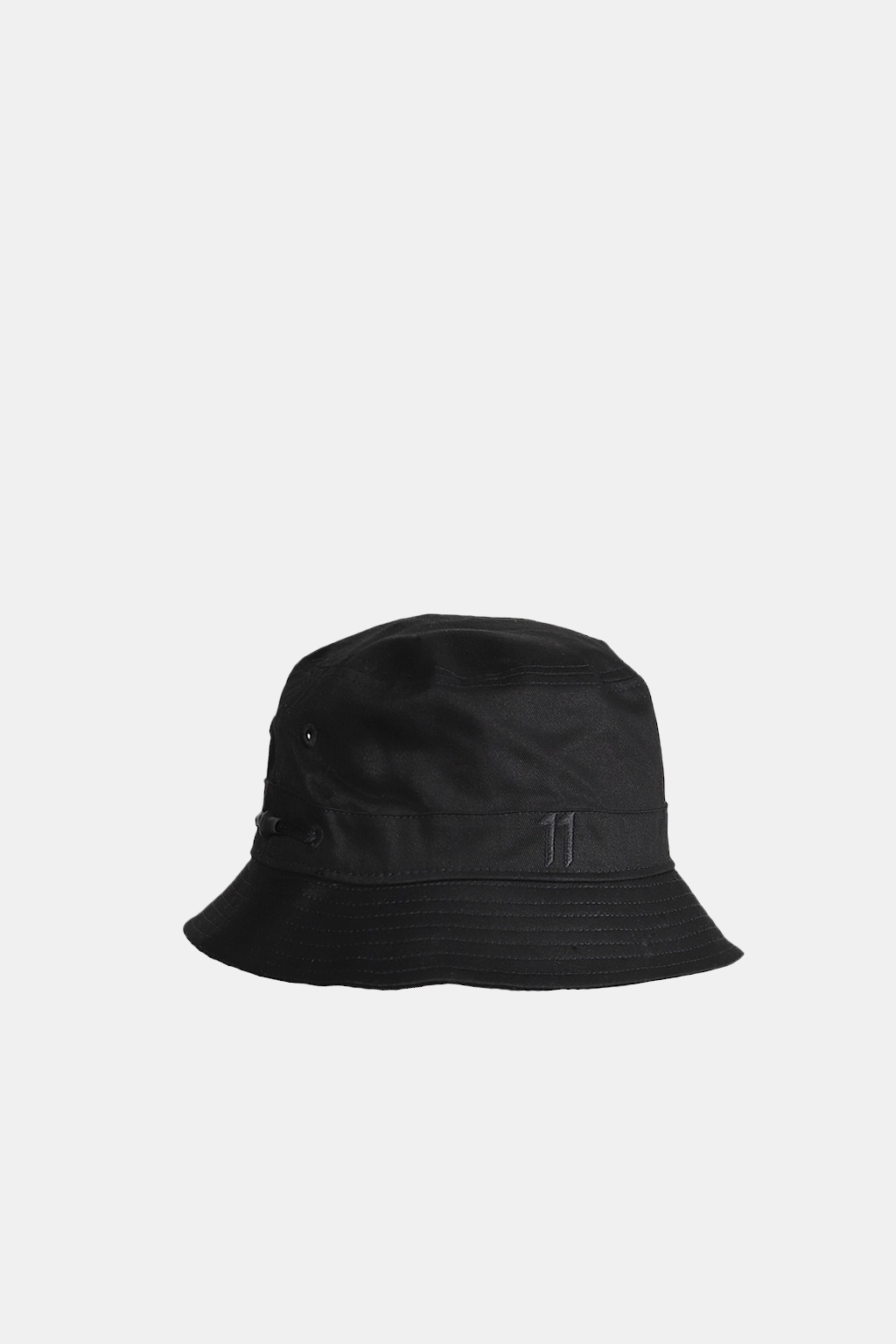 Bucket features an allover black color fabrication with an embroidered 11 logo at front. Embroidered New Era Cap logo at the left wear side. 11 lace tag at the rear.