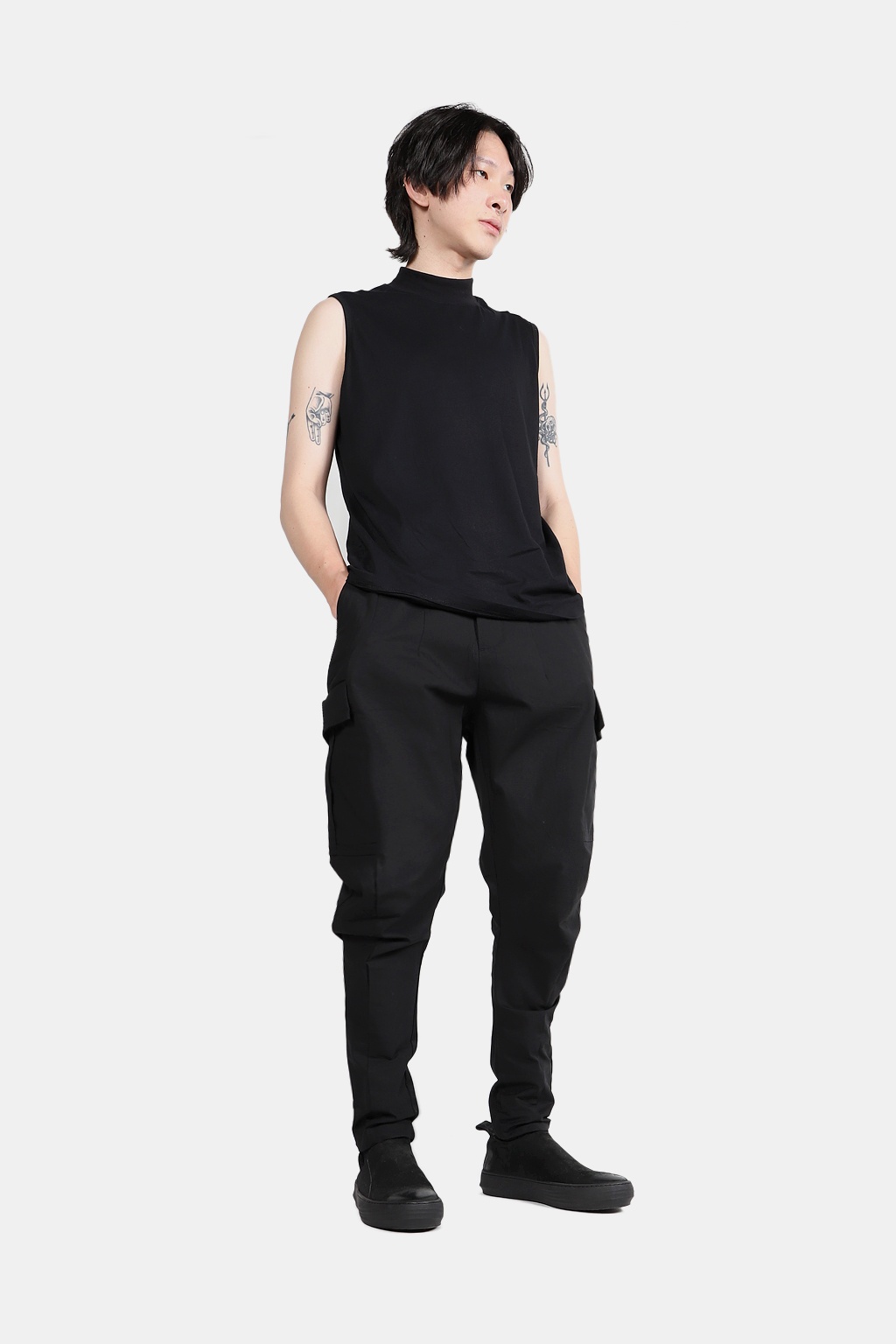 - 機能感上寬下窄縮口褲型